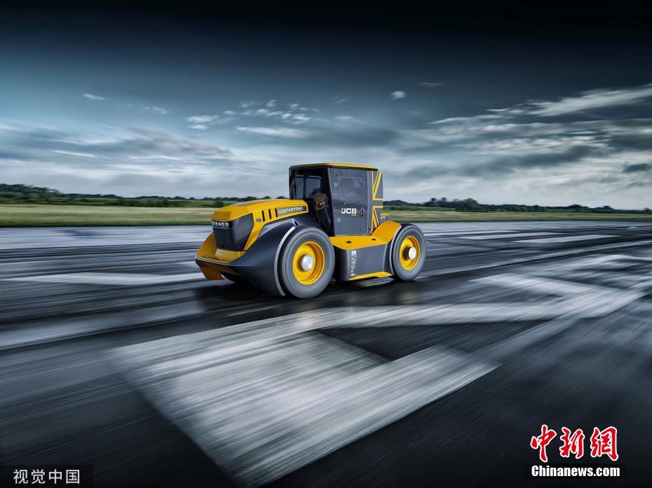 11月18日讯(详细拍照时刻不详),英国约克,英国工业机械制作商JCB推出世界上最快的拖拉机Fastrac,不负众望的Fastrac在英国约克郡邻近的艾灵顿机场以103.6英里/小时(约166.7公里/小时)的速度赢得了世界上最快拖拉机的称谓。